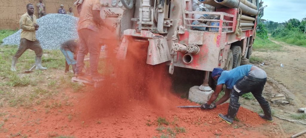 the construction of both hand-pumped and mechanized electric boreholes. In the case of the electric mechanization project, the boreholes were drilled to a depth of 300 feet (91 meters) to access water. which is then stored in a 300-liter tank.